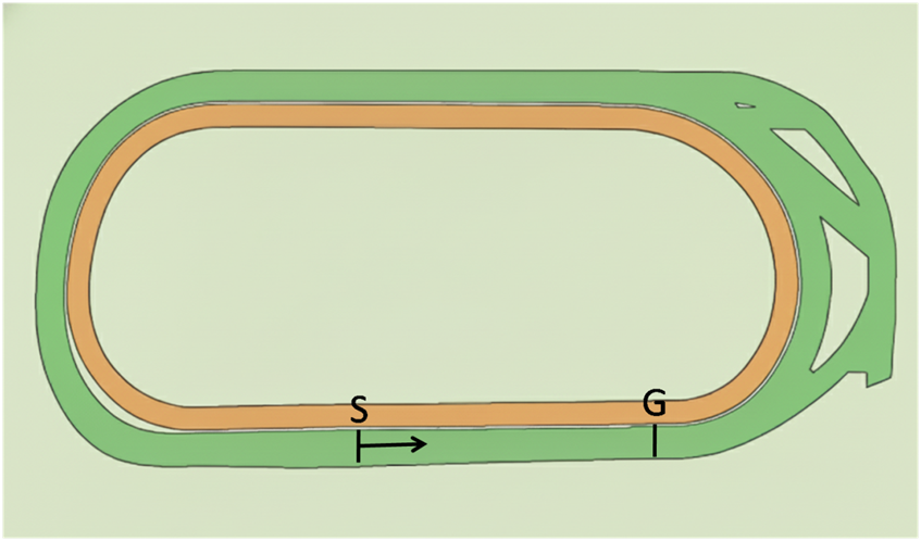 図の下側中央のSからスタートし、Gを通り過ぎてもう一度Gまで走ったところがゴール